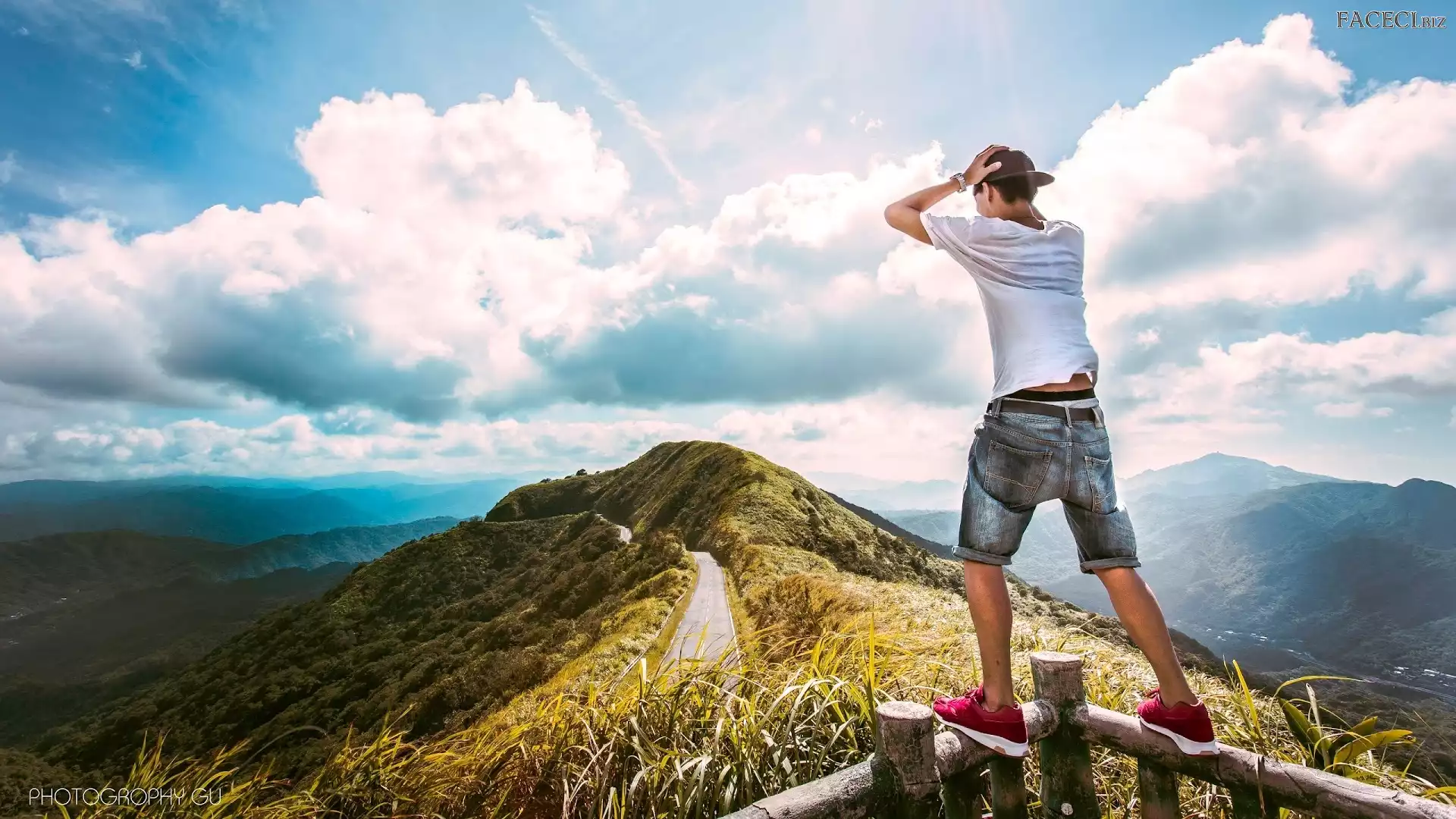 Turysta, Mgła, Góry, Panorama, Balustrada, Chmury, Droga - faceci.biz
